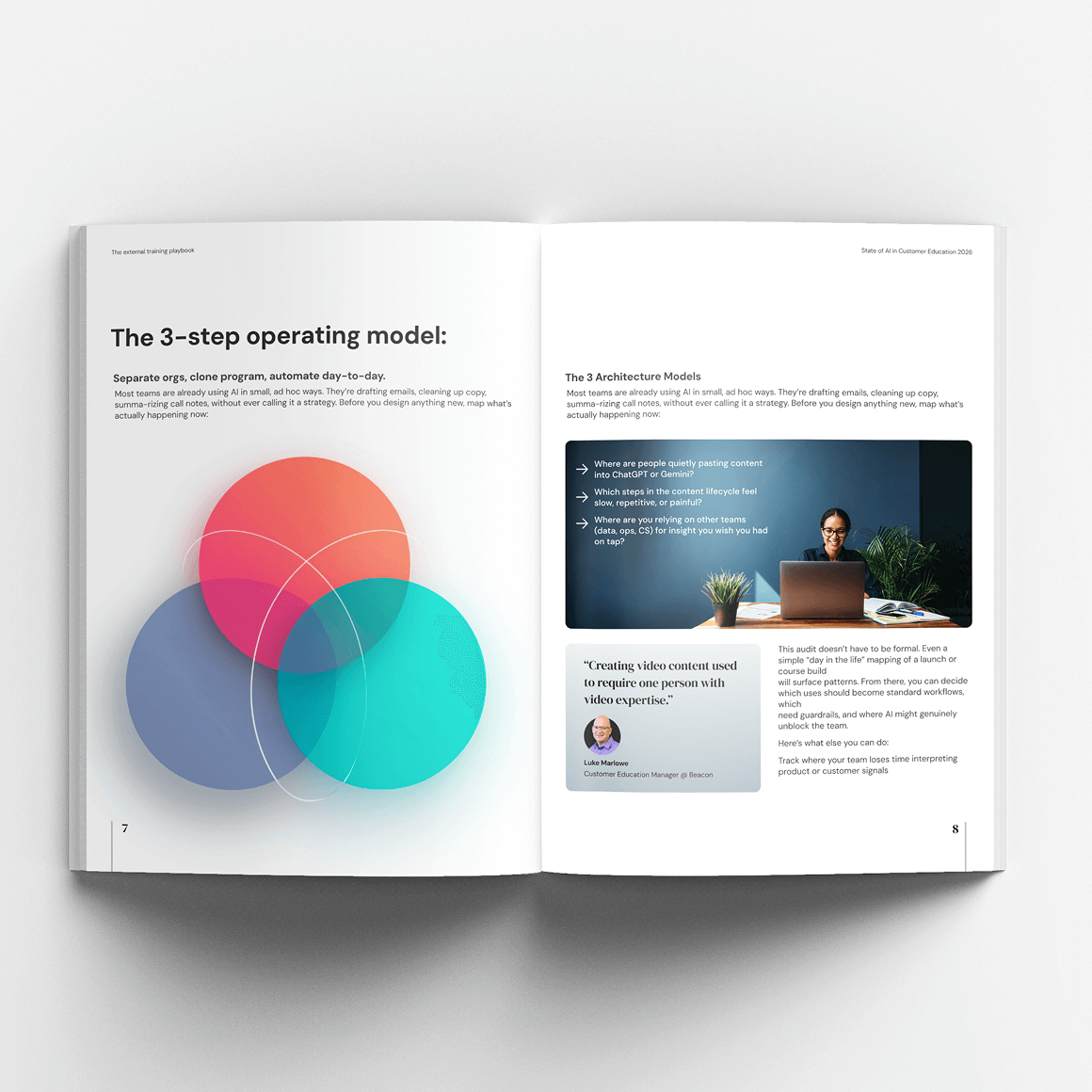 A hands-on guide to running external training across many orgs. Packaged as a workbook using the 3-step framework.