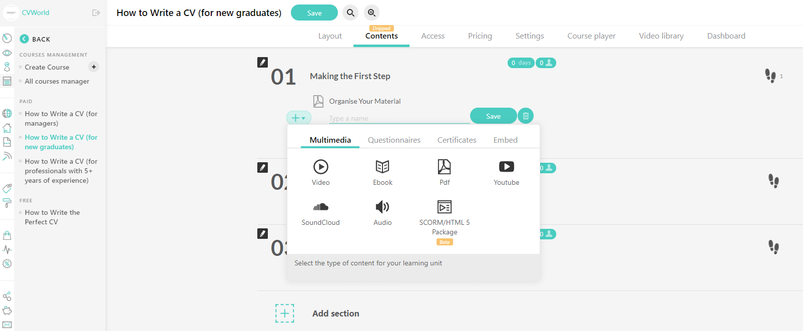 You will be guided to the Course Creation Wizard, a user-friendly tool that simplifies the course creation process in just a few steps.